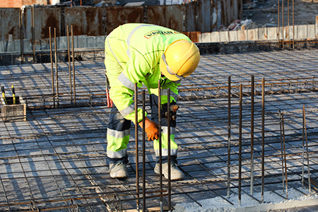 鉄筋工事とは、設計図から鉄筋の配置関係を把握し、現場に入ってきた資機材(鉄筋など)を設計図通りに組み立てる仕事です。 仕様書と図面を読める能力、配筋、段取りなどを経て、嵌合、結束でコンクリートを流し込む直前の骨組みを組むまでが仕事です。